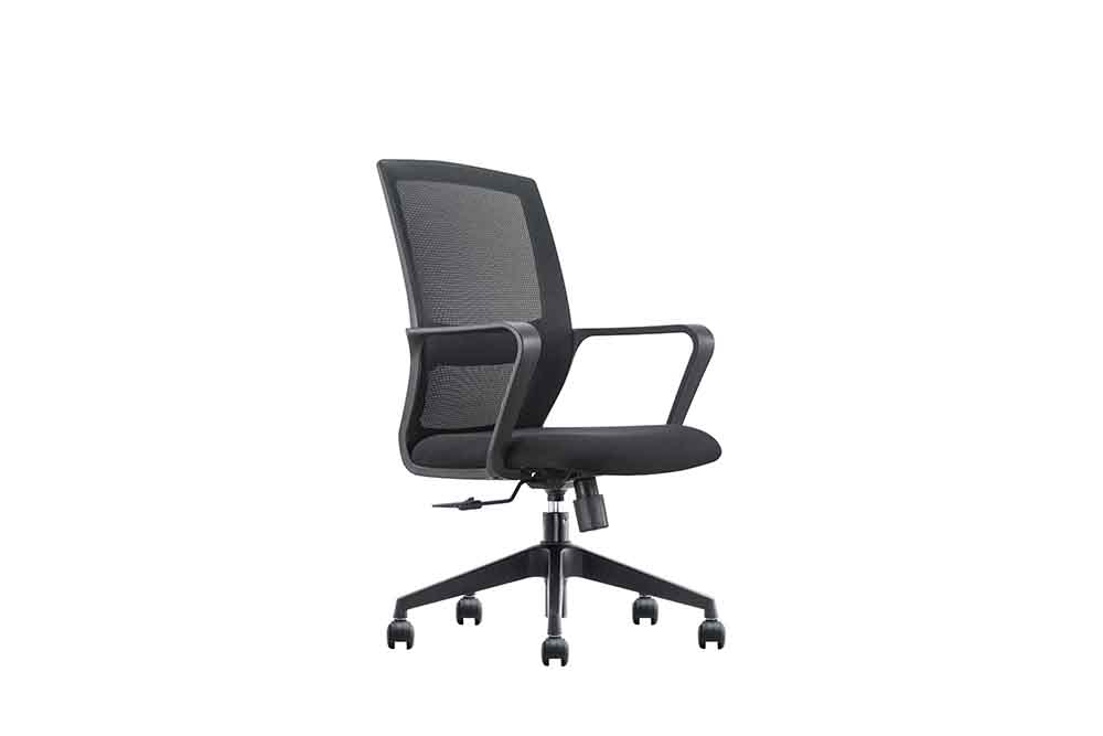1.黑色PP加玻纖背架 2.黑色PP固定扶手 3.座包采用40#高彈力海綿 4.配中班蝴蝶底盤,帶原位鎖定功能 5.固定扶手連接椅背和椅座(不車線),自動逍遙貼背功能 6.100沉口7CM黑色氣桿 7.320mm黑色尼龍五星腳 8.?50mm黑色耐磨尼龍輪