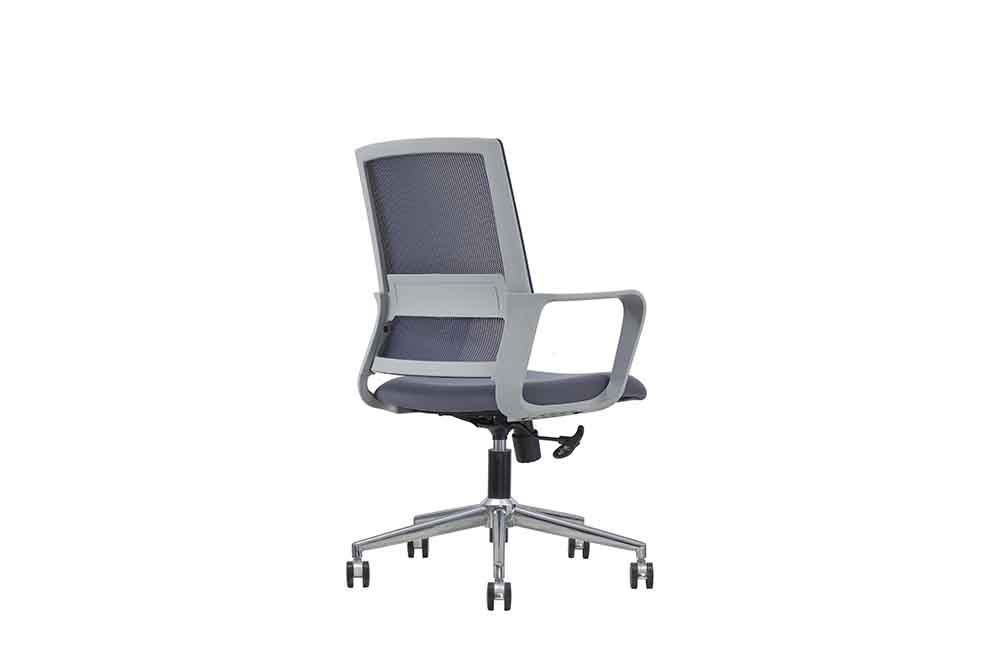 1.灰色PP料加纖背架,帶固定腰靠 2.40#高回彈中軟切割海綿 3.灰色PP料連體固定扶手 4.黑色原色位鎖定底盤 5.85#沉口4公分黑色汽桿 6.?320電鍍牙簽腳腳 7.?50MM黑色尼龍輪