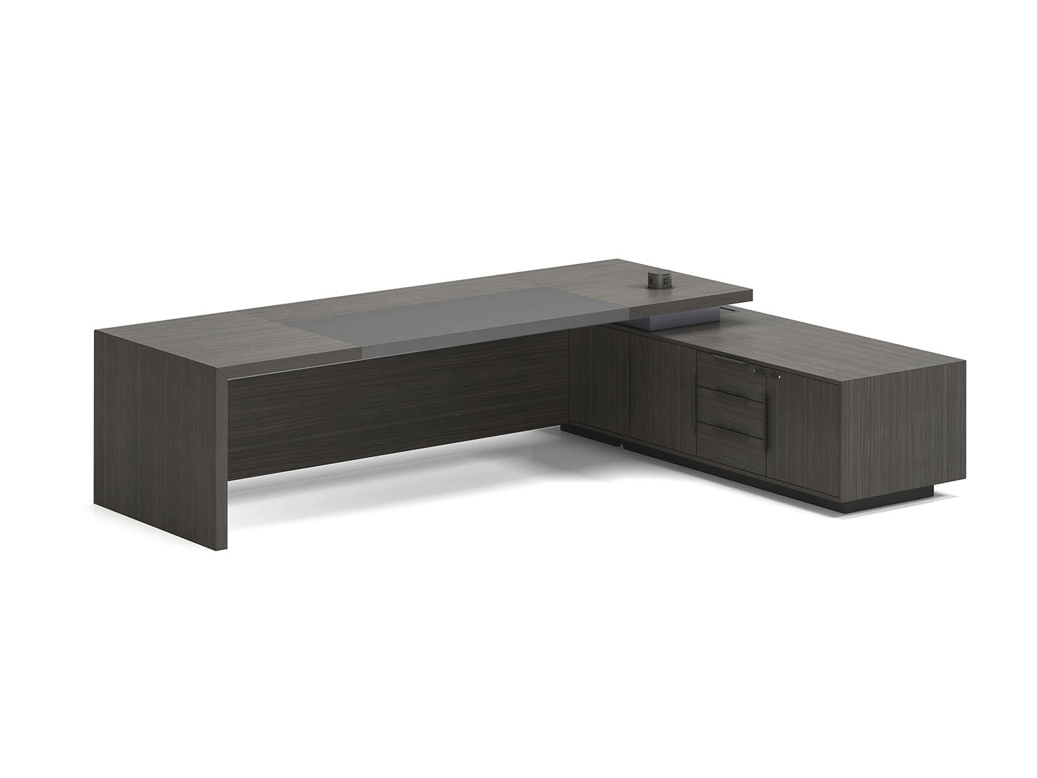 1.工藝:見光面采用E0級中密度纖維板+0.6mm天然木皮做水性漆,非見光面采用E0級刨花板貼三聚氰胺飾面; 2.封邊:見光面天然木皮封邊,非見光面采用優質PVC封邊; 3.細節:臺面、副柜做海棠角工藝,上下左右各留3MM工藝垂直倒角,臺面內嵌皮墊 4.配件:“BMB”緩沖門鉸+“BMB”緩沖三節導軌+機械密碼鎖+新款通體拉手+鋁合金散熱蓋; 6.走線:副柜內部走線,內配?80圓形過線盒,配OV鋁合金線盒; 7.班臺分左右; 8.選配:桌面可配無線充按彈電源,