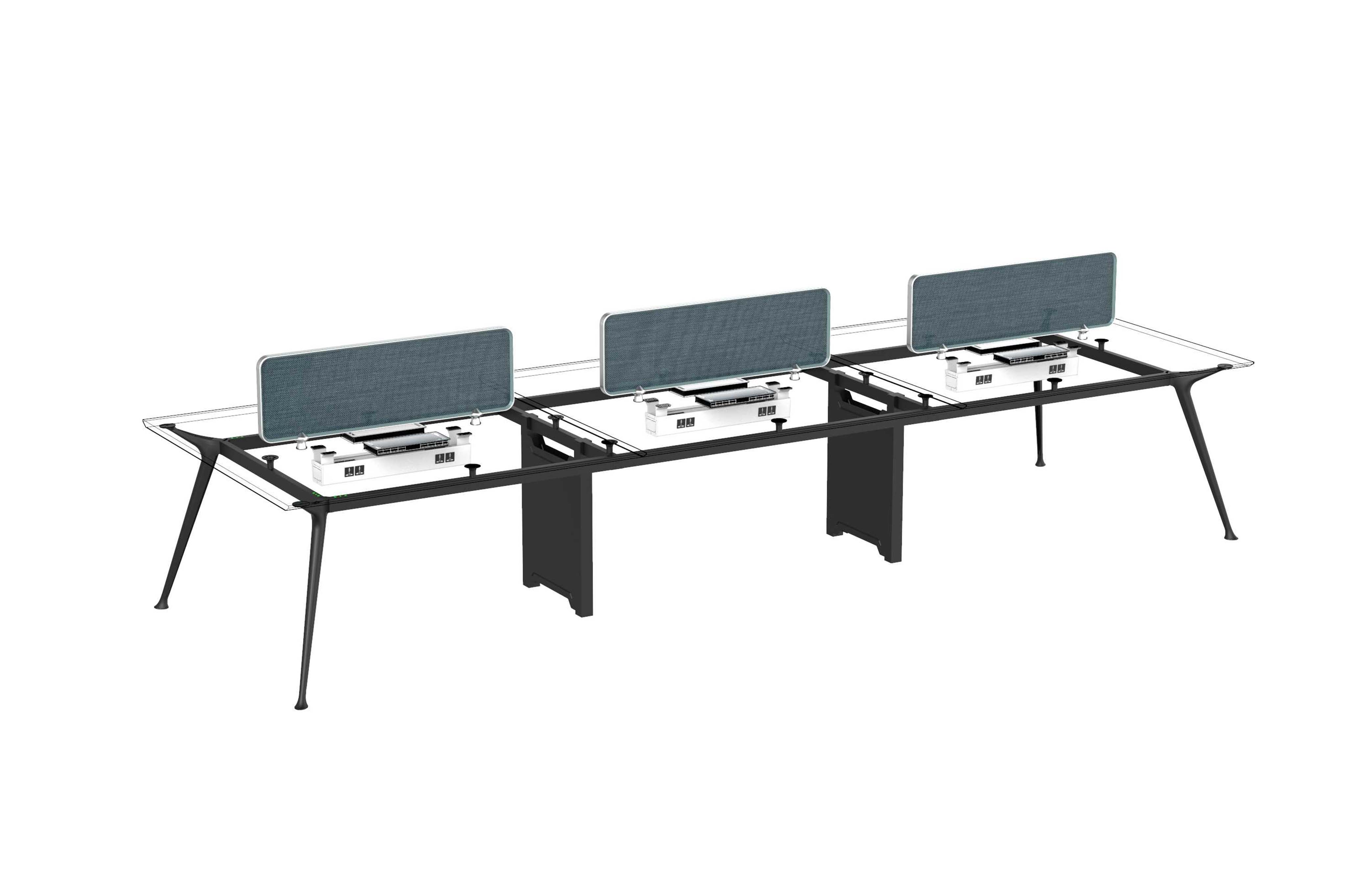 1.工藝:見光面采用E0級中密度纖維板+0.6mm天然木皮做水性漆/實色水性漆,非見光面采用E0級刨花板貼三聚氰胺飾面 2.封邊:見光面天然木皮封邊/實色水性漆,非見光面采用優質PVC封邊 4.五金:鋁合金壓鑄腳+鋼制支撐架; 5.配件:鋁合金散熱蓋+“BMB”牌導軌、門鉸+優質ABS翻蓋線盒+DT走線槽 5.屏風:高端無縫鋁框桌屏;