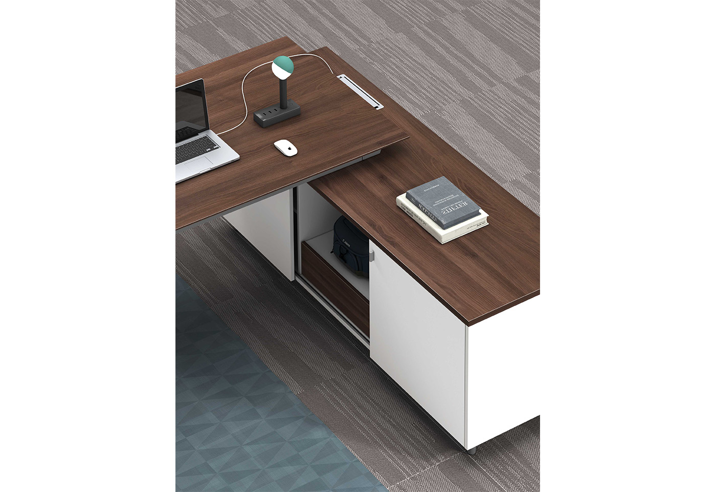1.工藝:采用E0級(jí)刨花板貼三聚氰胺飾面 2.封邊:采用優(yōu)質(zhì)PVC封邊 3.五金:1.5mm壁厚鋼腳+1.6mm壁厚鋼制橫梁+鋼制副柜支撐腳; 4.配件:“BMB”牌導(dǎo)軌+高端趟門配件+鍍珍珠鉻色鉛筆拉手+鋅合金擋板夾+優(yōu)質(zhì)鋁合金散熱蓋; 5.走線:臺(tái)面配OP線蓋,副柜內(nèi)部走線,內(nèi)配?80圓形過線盒; 6.班臺(tái)分左右;