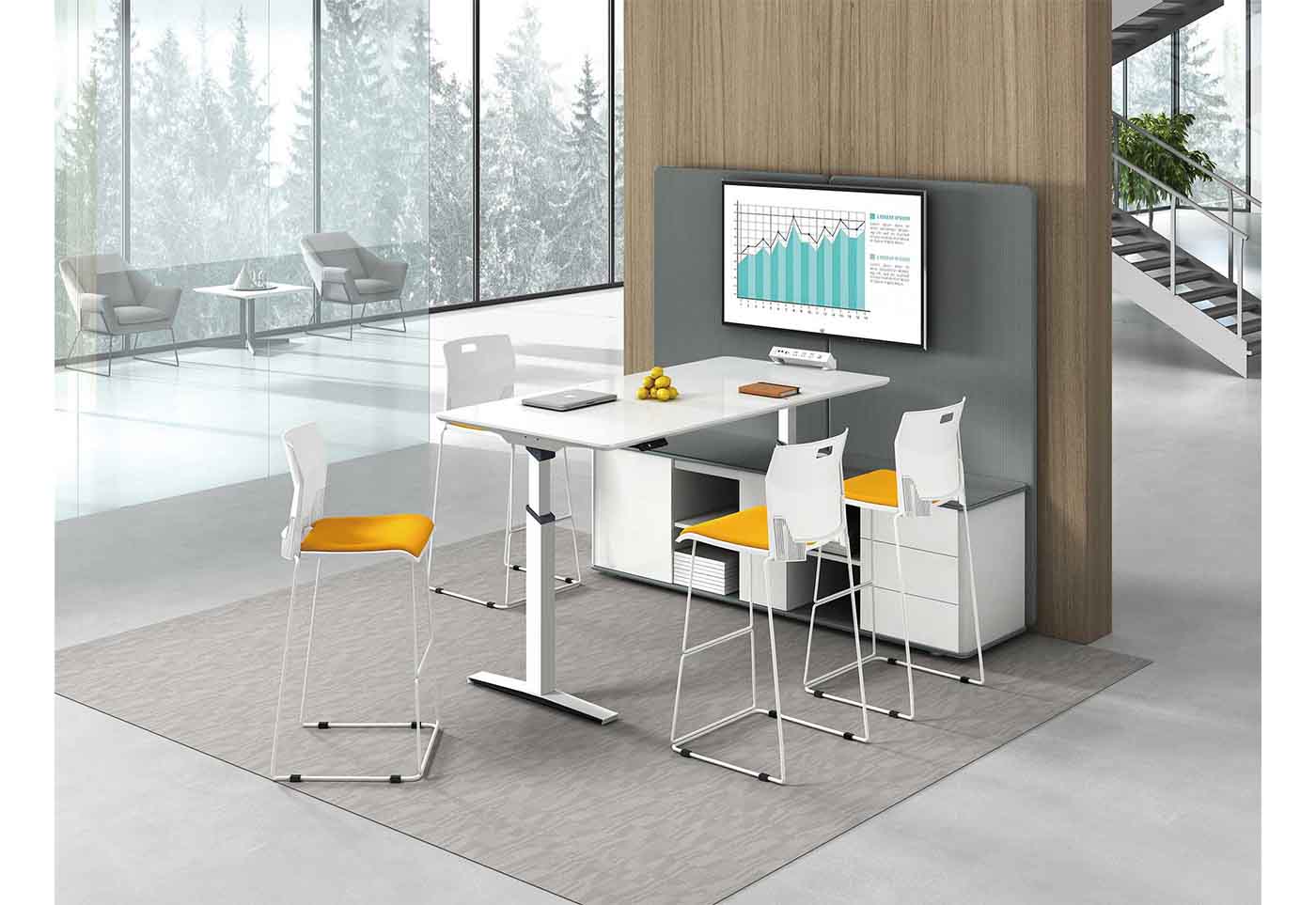 1.工藝:E0級中密度纖維板+做實色水性漆,其余采用E0級刨花板貼三聚氰胺飾面 2.封邊:實色水性漆、優質PVC封邊 3.細節:副柜臺面灰色捫皮,優質膠條封邊 4;五金:雙電機升降桌腳,四檔高度記憶,遇阻回退功能,配三通彈簧線; 5.配件:“BMB”阻尼門鉸+“BMB”緩沖三節導軌+鋅合金擋板夾+智能密碼鎖+優質ABS腳墊; 6.臺面配大白雙面六插電源,副柜內部走線,配?60圓形過線盒;