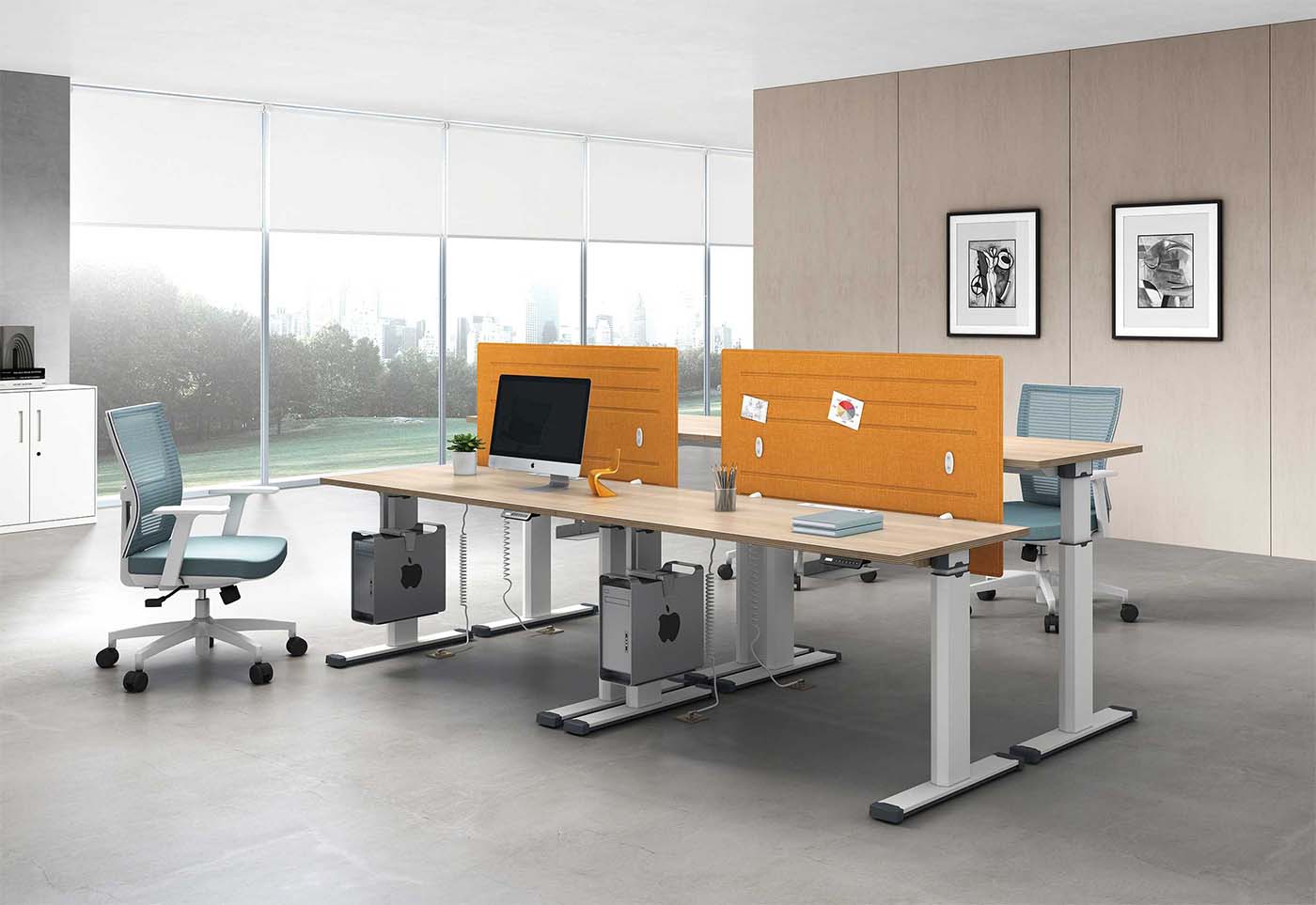 1.工藝:采用E0級刨花板貼三聚氰胺飾面 2.封邊:采用優質PVC封邊 3.桌屏:多色可選,異步升降; 4.五金:雙電機升降桌腳,四檔高度記憶,遇阻回退功能,配三通彈簧線; 5.臺面配大白雙面六插電源; 6.選配:可選配鋼制活動柜、木制活動柜、主機架、蛇形管等;