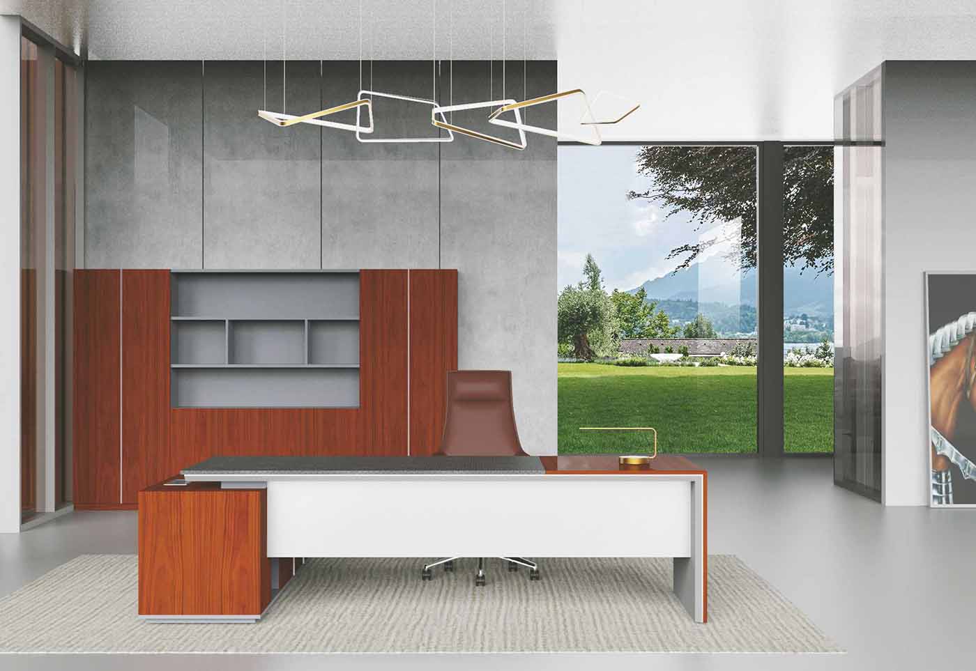 1.工藝:木紋色采用E0級中密度纖維板+0.6mm天然木皮做水性漆/實色水性漆,實色采用E0級刨花板貼三聚氰胺飾面; 2.封邊:木紋色天然木皮封邊/實色水性漆,實色采用優質PVC封邊; 3.細節:臺面與臺腳做海棠角工藝,上下各留3MM工藝垂直倒角; 4.配件:“BMB”牌阻尼門鉸+“BMB”牌阻尼導軌+鋁合金散熱蓋; 5.走線:副柜內部走線,配OP線蓋,內配?80圓形過線盒+86線盒孔;