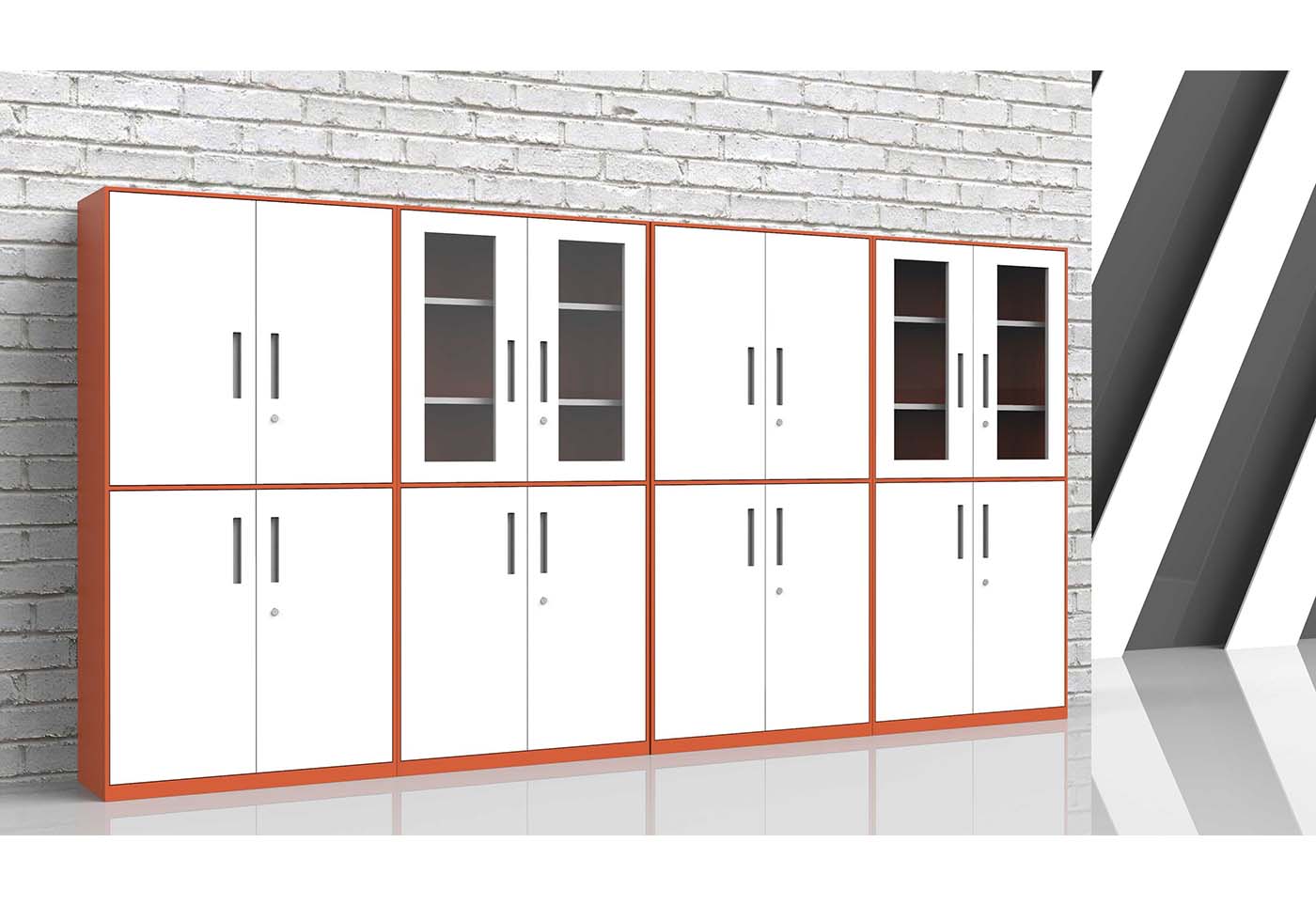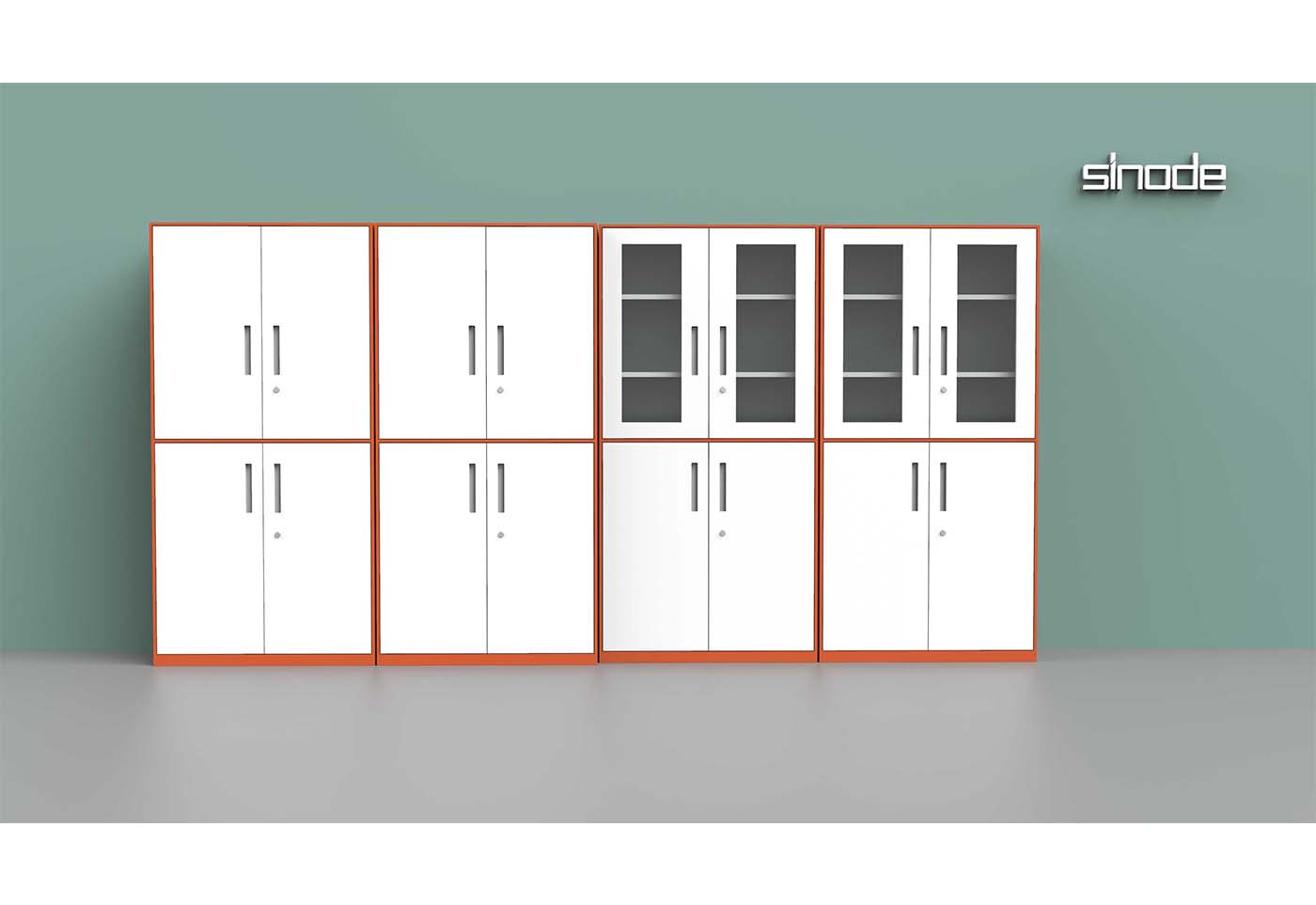 1.基材:采用0.8mm壁厚冷軋鋼板+12mm窄邊柜體; 2.面材:靜電粉末噴涂; 3.配件:優質合頁+活動鋼制層板+優質柜門鎖+鋼制玻璃門